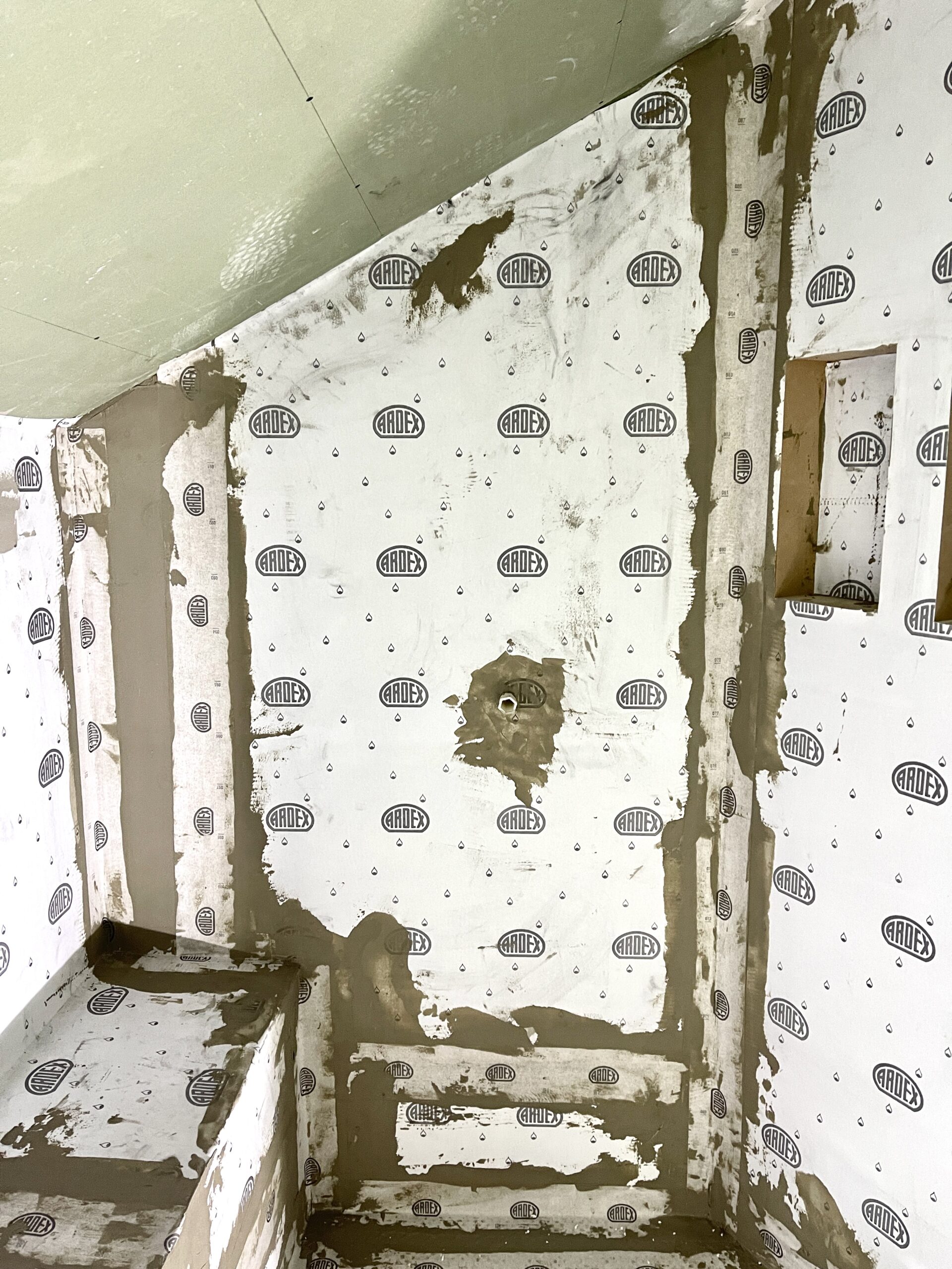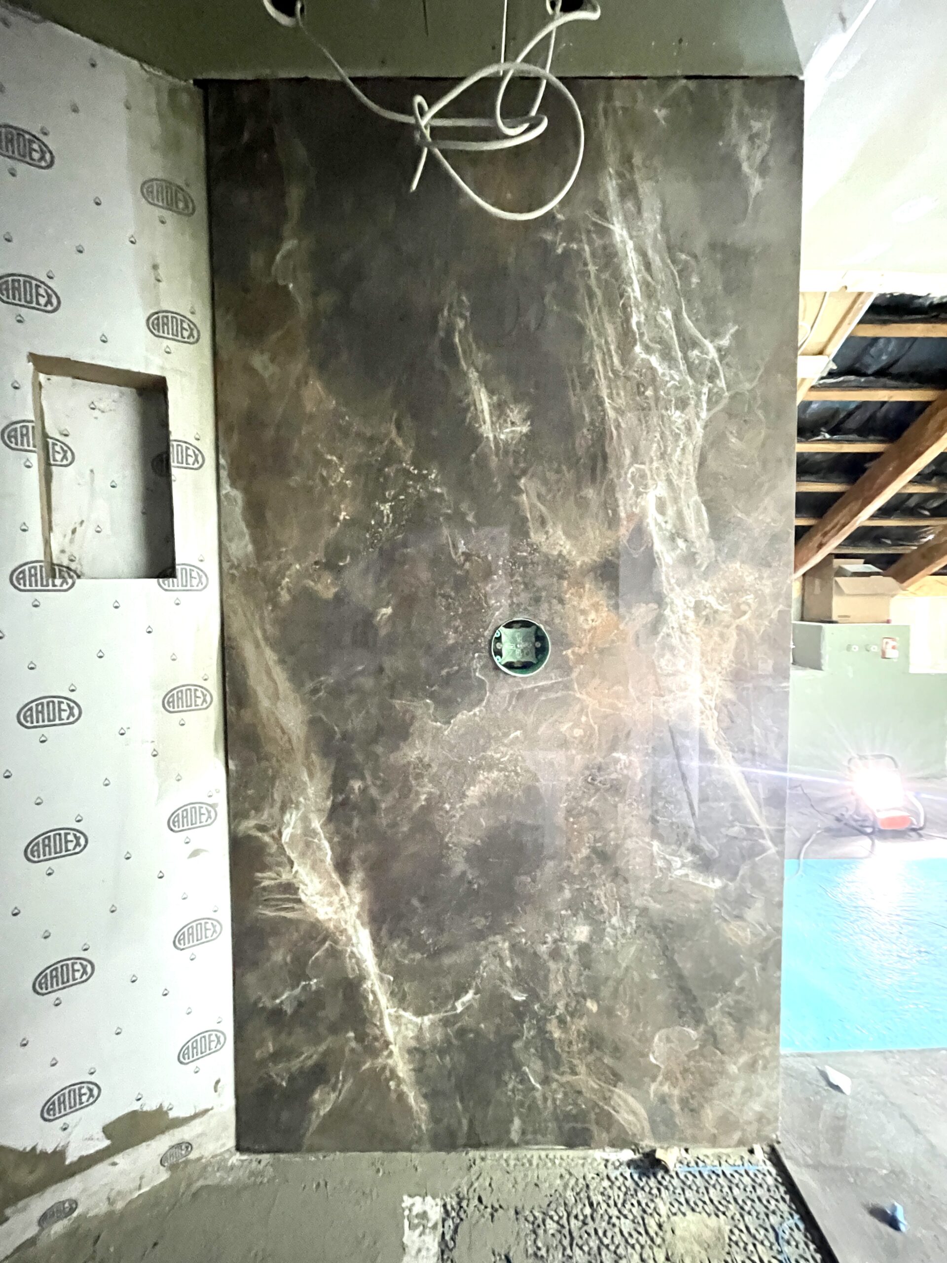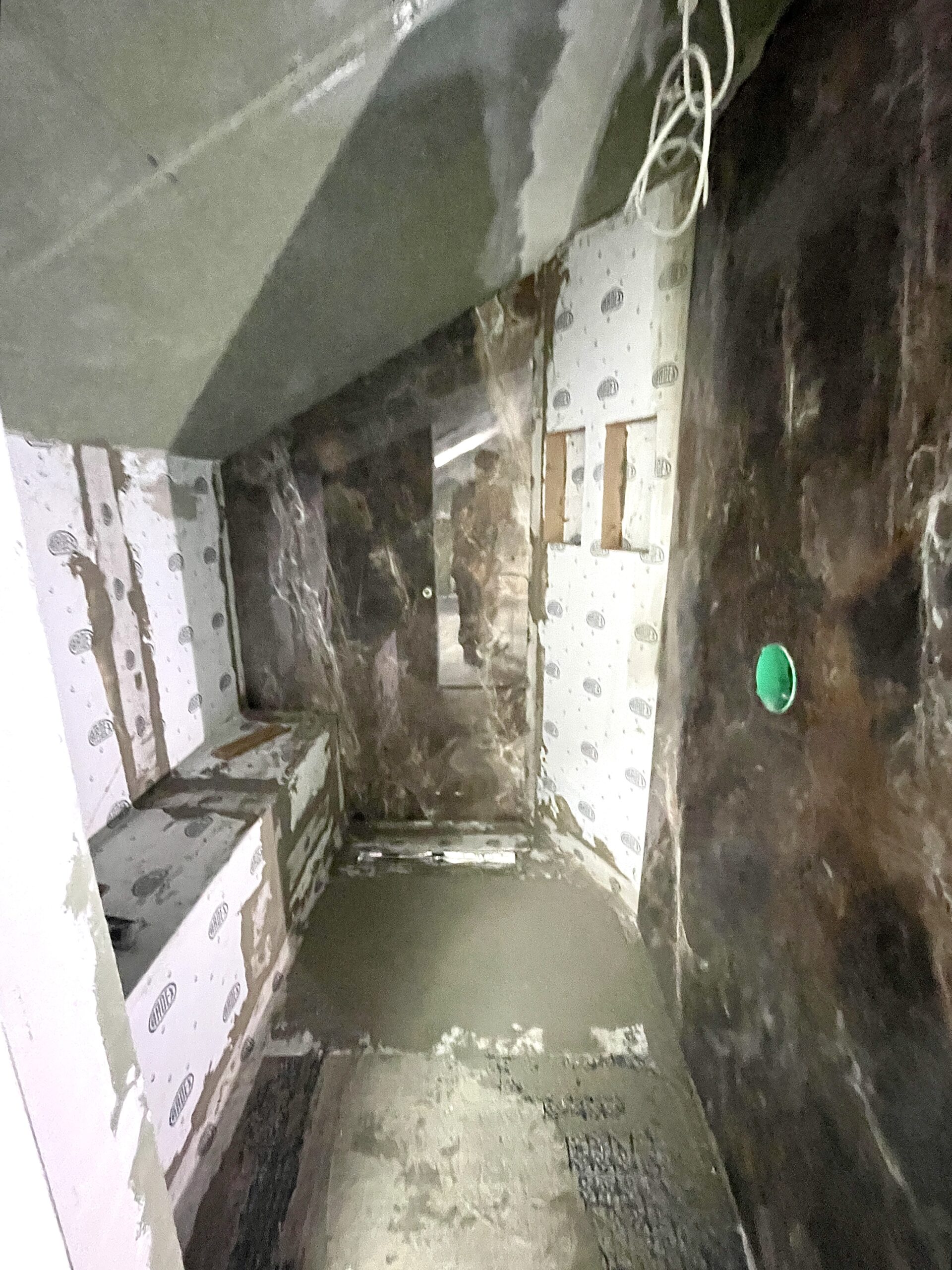 Damit ein Bad in XXL-Optik erstrahlen kann, braucht es höhere Ansprüche an den Untergrund. Schließlich möchten wir langlebige und mangelfreie Arbeiten abliefern. Nicht jeder Untergrund eignet sich somit für alle Fliesenformate. Der Untergrund sollte besonders eben sein und keine Hohllagen oder Kantenversatz aufweisen. Ebenfalls muss er ausreichend tragfähig und stabil sein, denn große Fliesen haben ordentlich Gewicht. Ist dies von der Bausubstanz her nicht gegeben, müssen wir nacharbeiten.