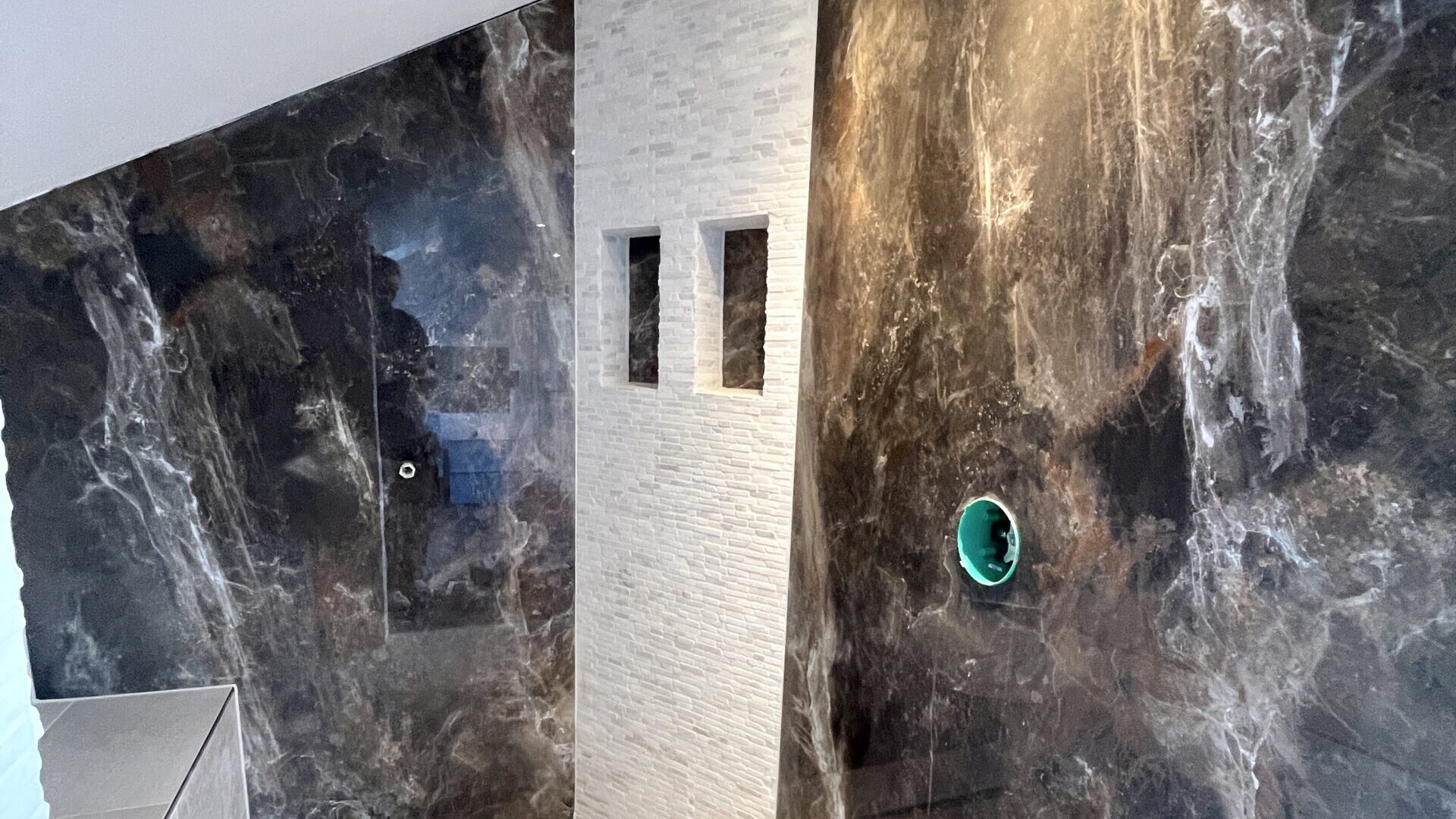 XXL-Fliesen sind in der Regel genauso langlebig wie kleinere Formate. Ein Bad ist jedoch ein Ort, welcher täglich aufgesucht und genutzt wird. Vor allem wenn viele verschiedene Gäste oder Kinder den Raum nutzen, ist die Gefahr vorhanden, dass Beschädigungen entstehen. Das bedeutet dann wiederum für uns: Wir können nicht ein oder zwei kleine, kaputte Fliesen austauschen, sondern es ist in der Regel die ganze Wand betroffen – welche aus einer Fliese besteht.